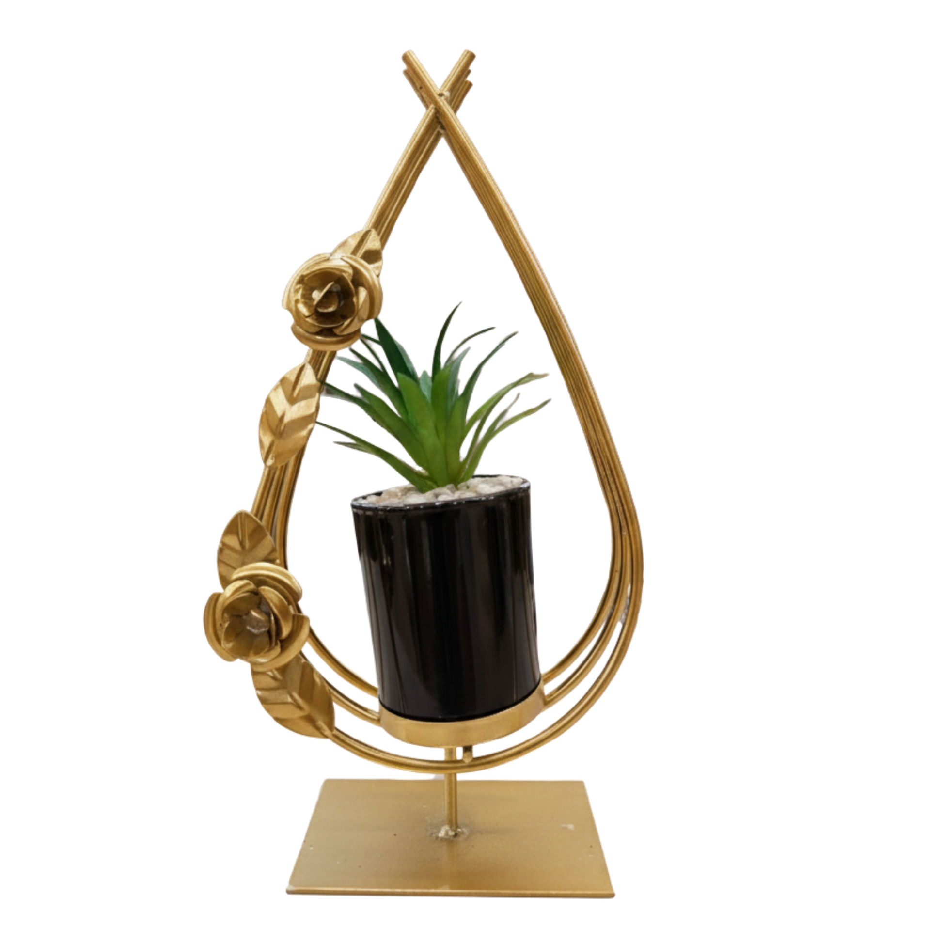 Elevate your interior with the dramatic elegance of the "Golden Bloom Arc" Architectural Planter Sculpture, a captivating fusion of modernist design and botanical luxury.