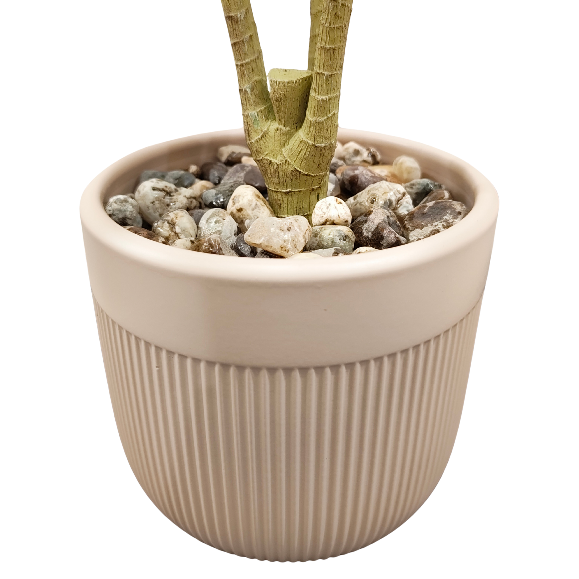 The plant is securely set in a chic, mauve-pink ceramic pot with an elegant vertical fluted texture. This modern pairing makes it a perfect accent piece for a coffee table, desk, shelf, or bedside table in any room—from a minimalist living area to a bright office. Enjoy the serenity of nature with the convenience of a high-quality, long-lasting artificial piece.